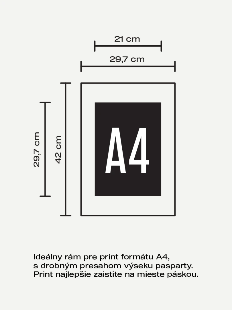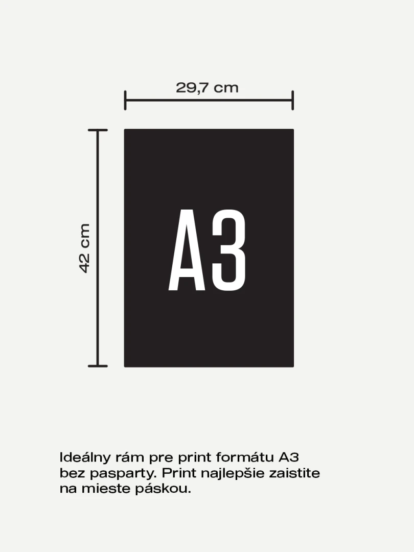 The frame is compatible with prints in A3 format without a mat board and A4 with a mat board.