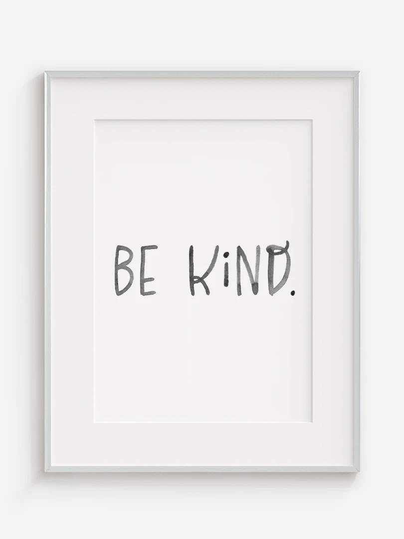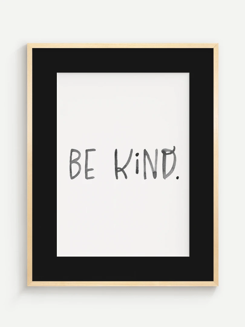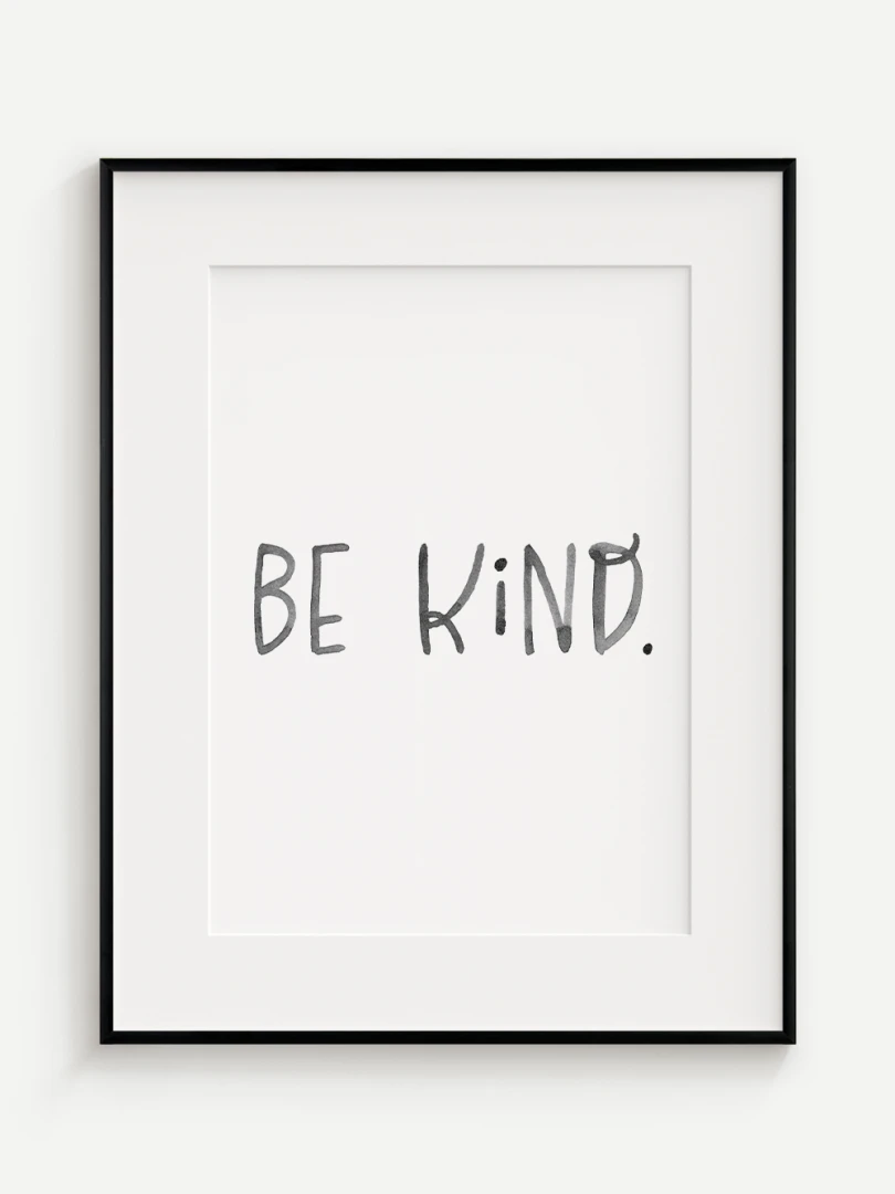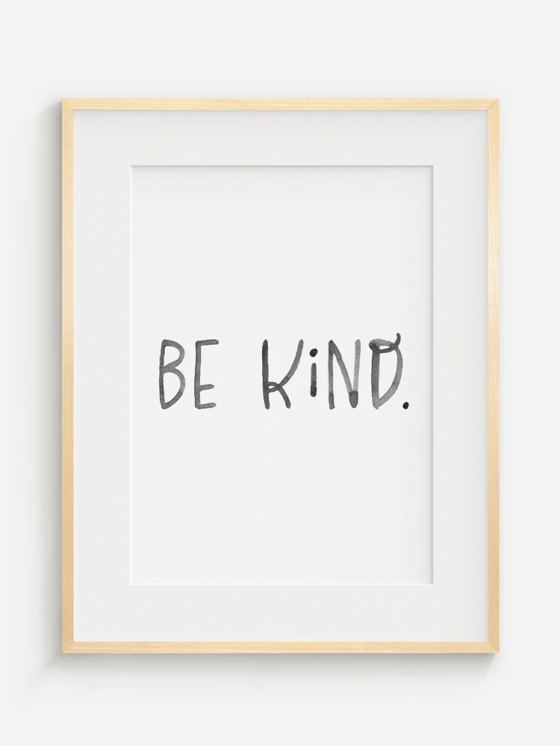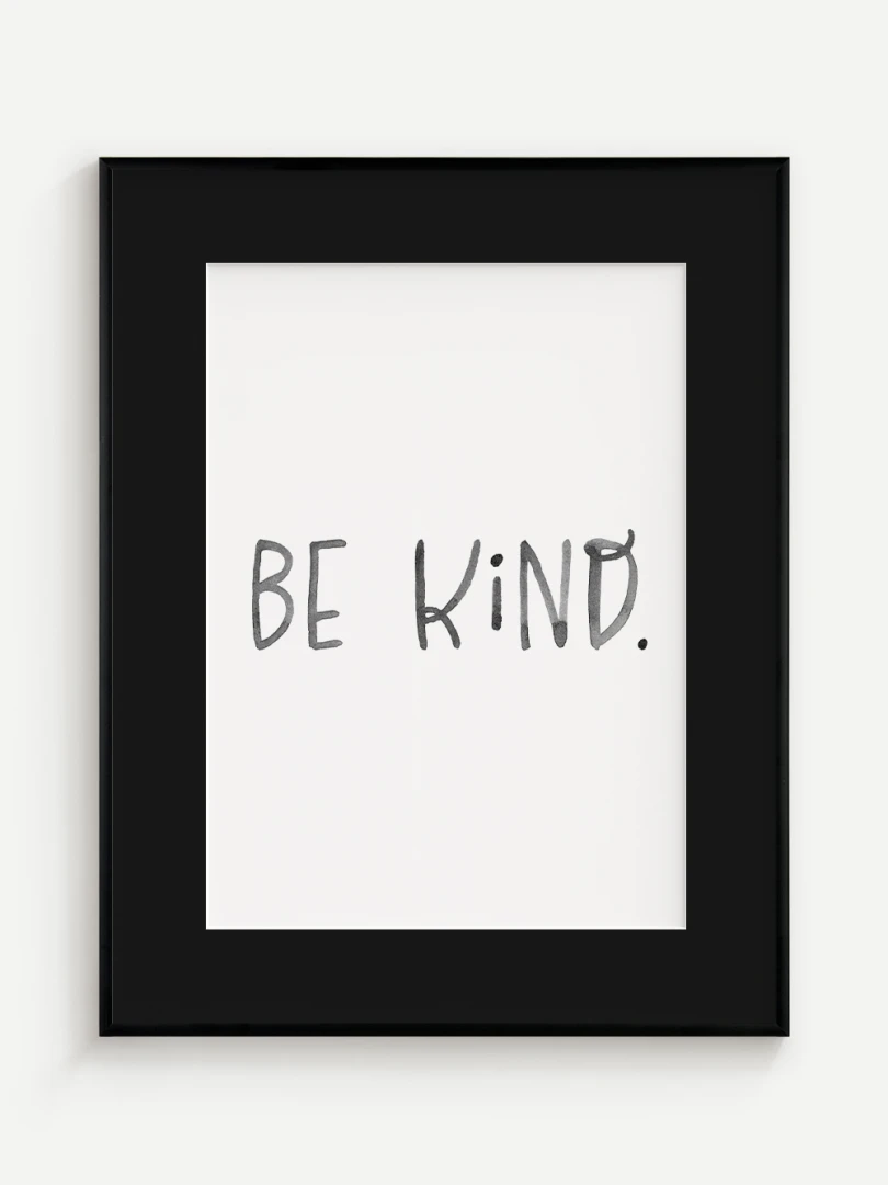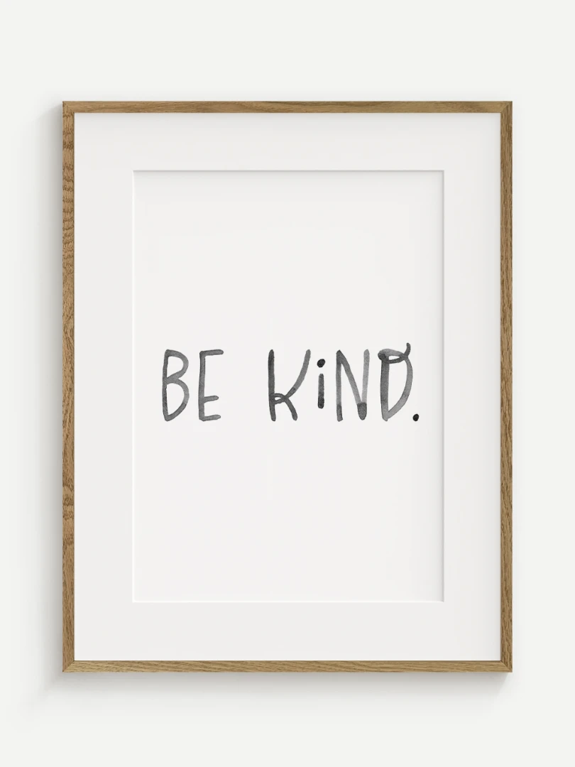This print carries a simple but important message, "Be kind." The handwritten text in soft watercolor adds authenticity to the design and reminds us that kindness is one of the most valuable qualities we can spread every day.