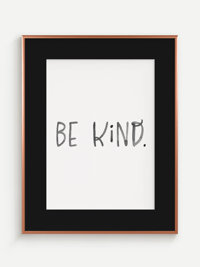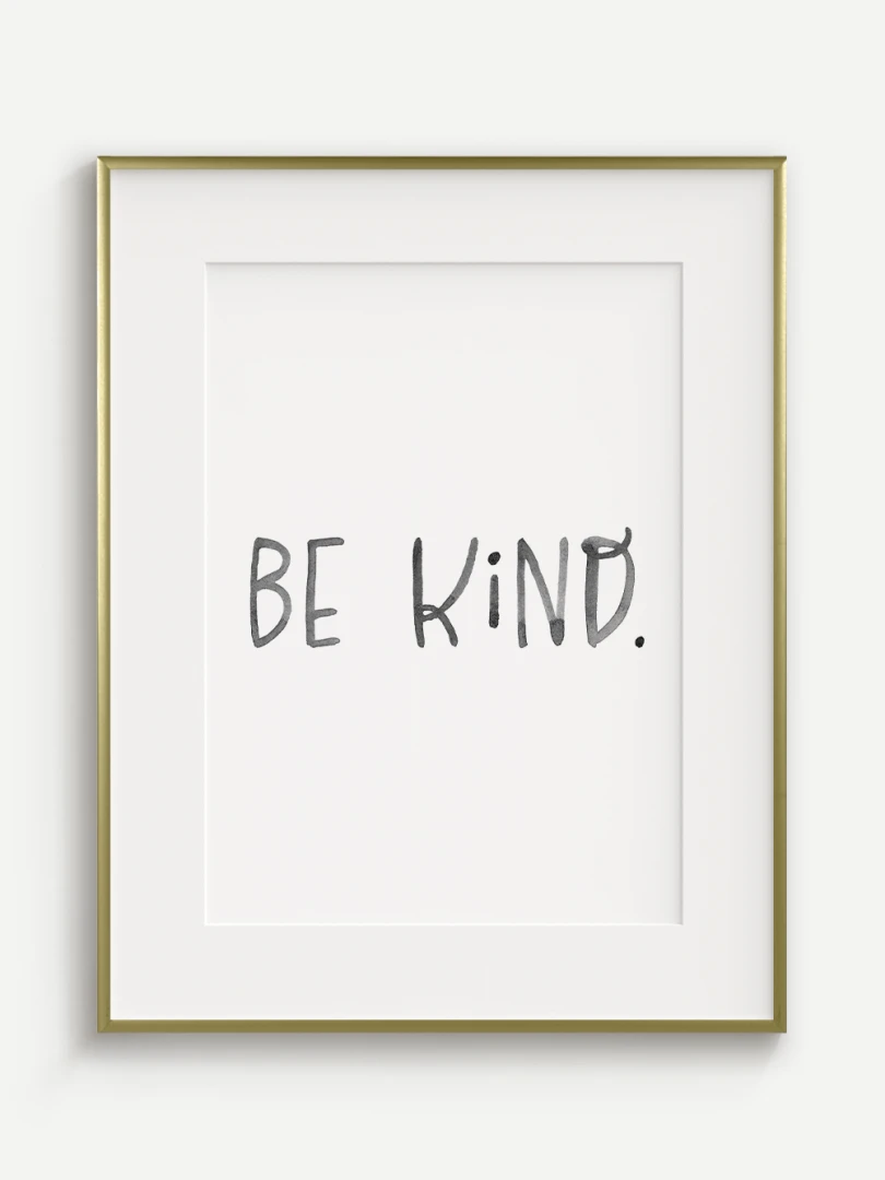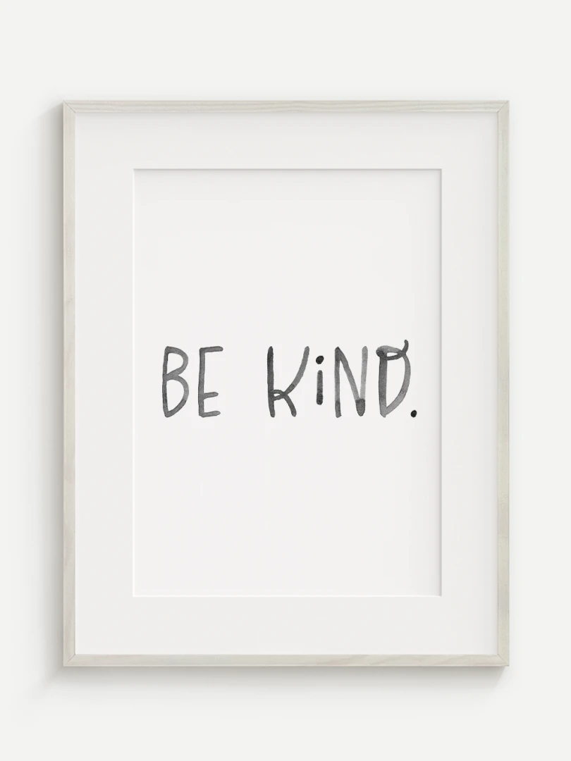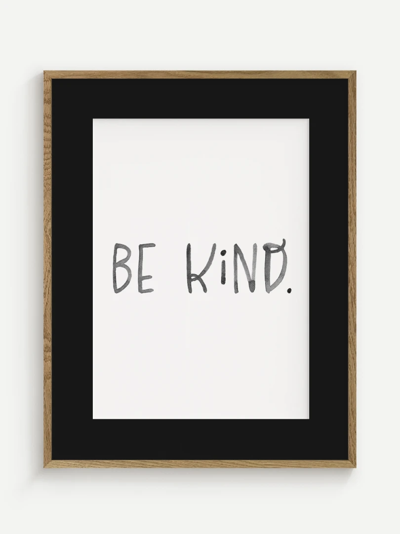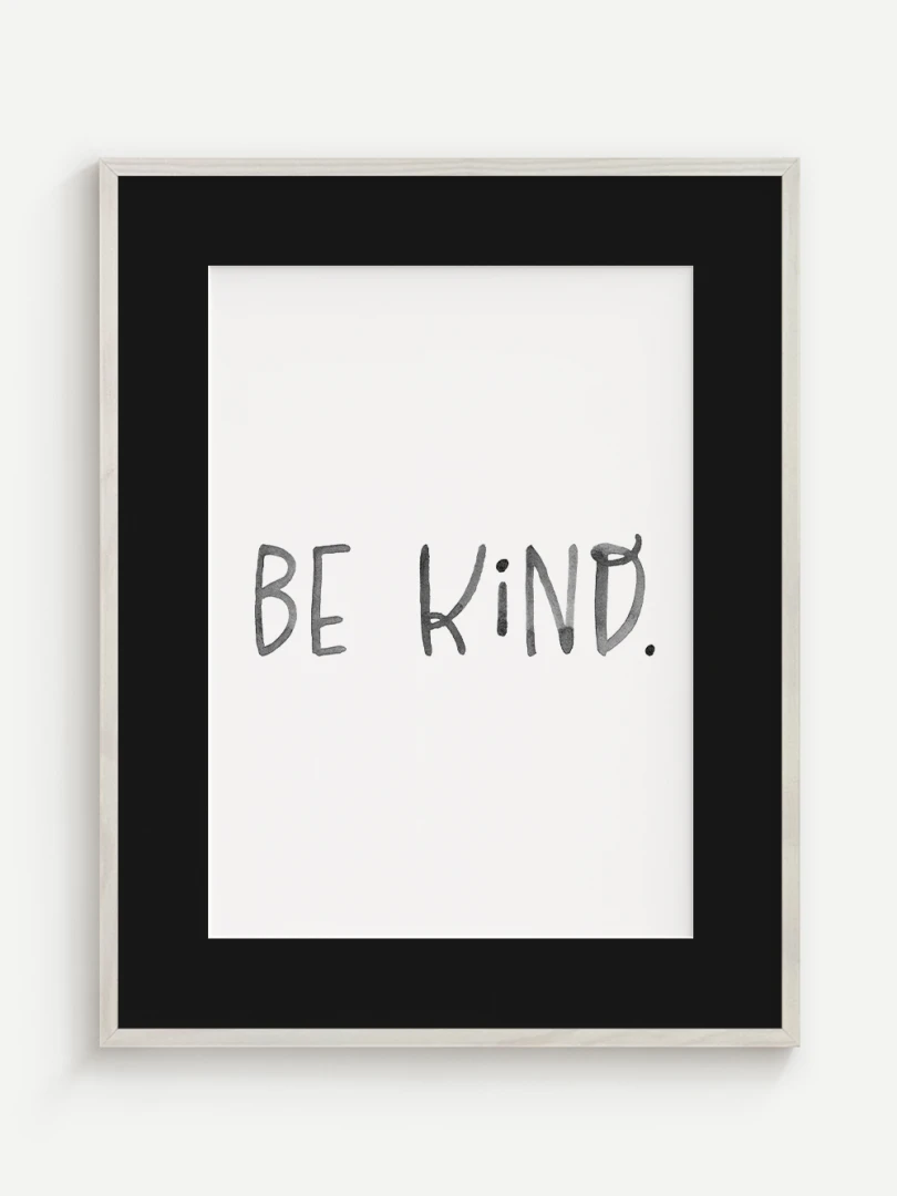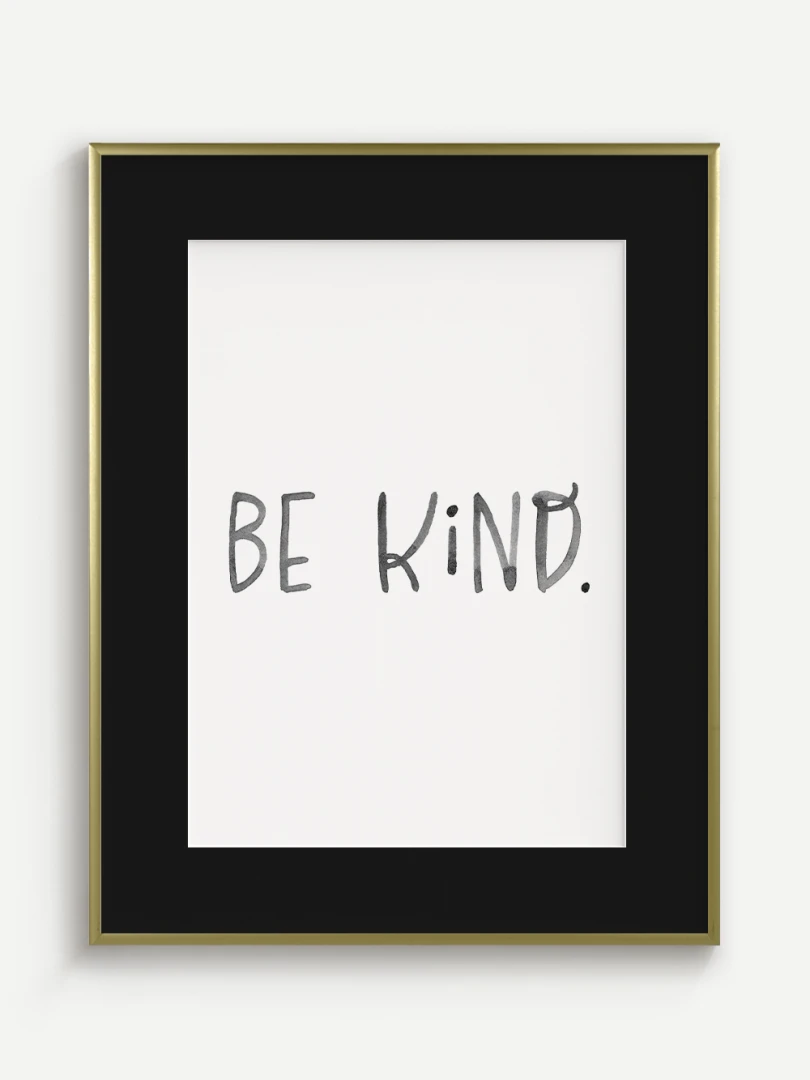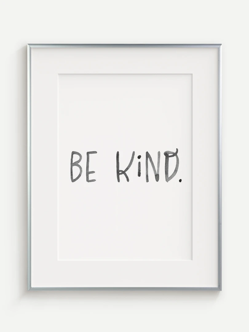 This print carries a simple but important message, "Be kind." The handwritten text in soft watercolor adds authenticity to the design and reminds us that kindness is one of the most valuable qualities we can spread every day.