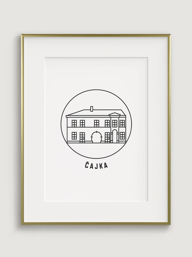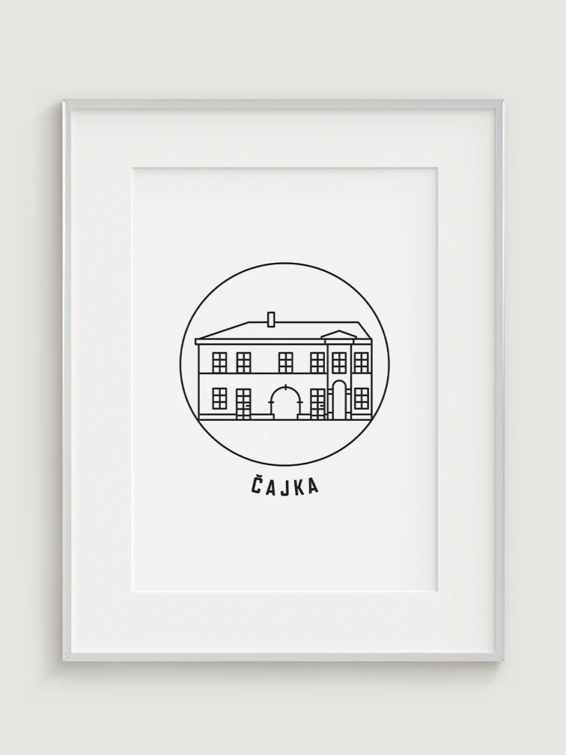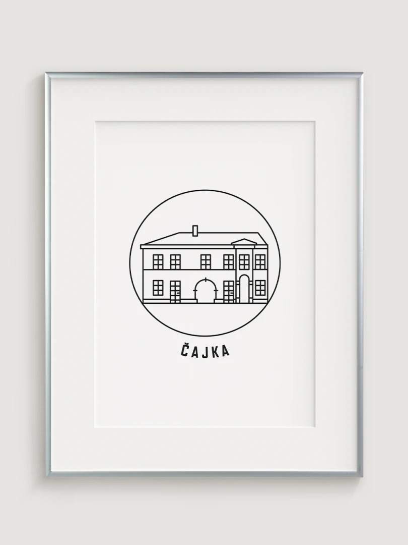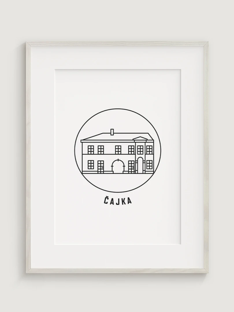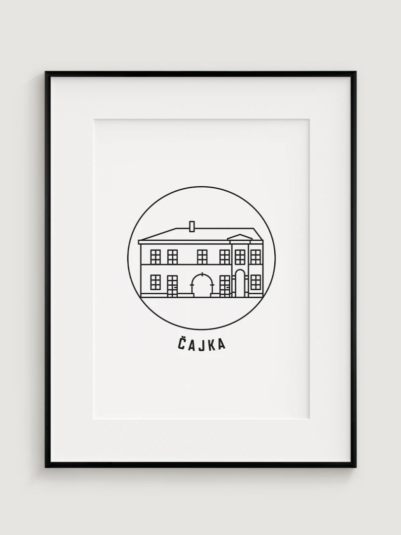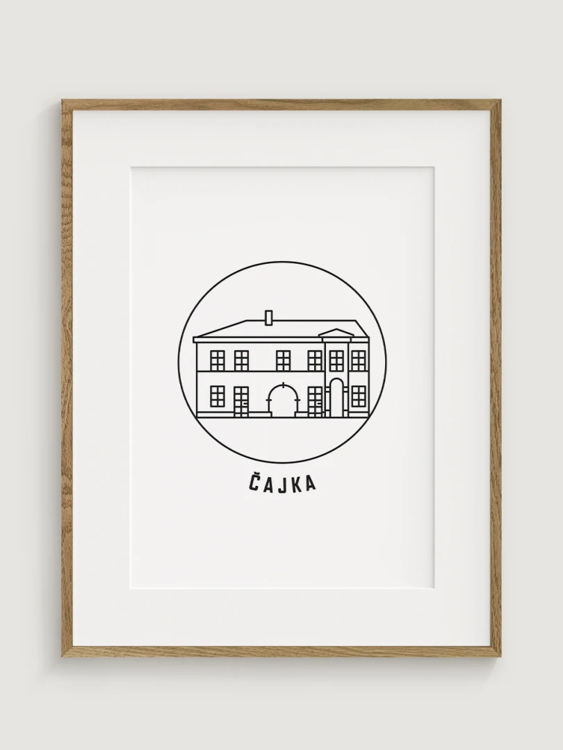 This artistic print stylishly depicts the iconic building of Čajka, an important architectural landmark of Trnava, which was once a symbol of modern city life. The elegant, linear design captures the uniqueness of this modernist building and its historical significance. Perfect for those who appreciate architecture, history and unique details, this piece will add a touch of nostalgia and heritage to your space.