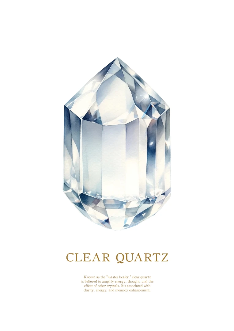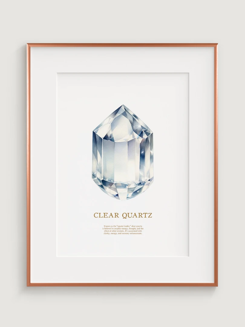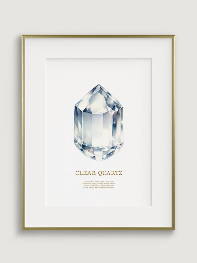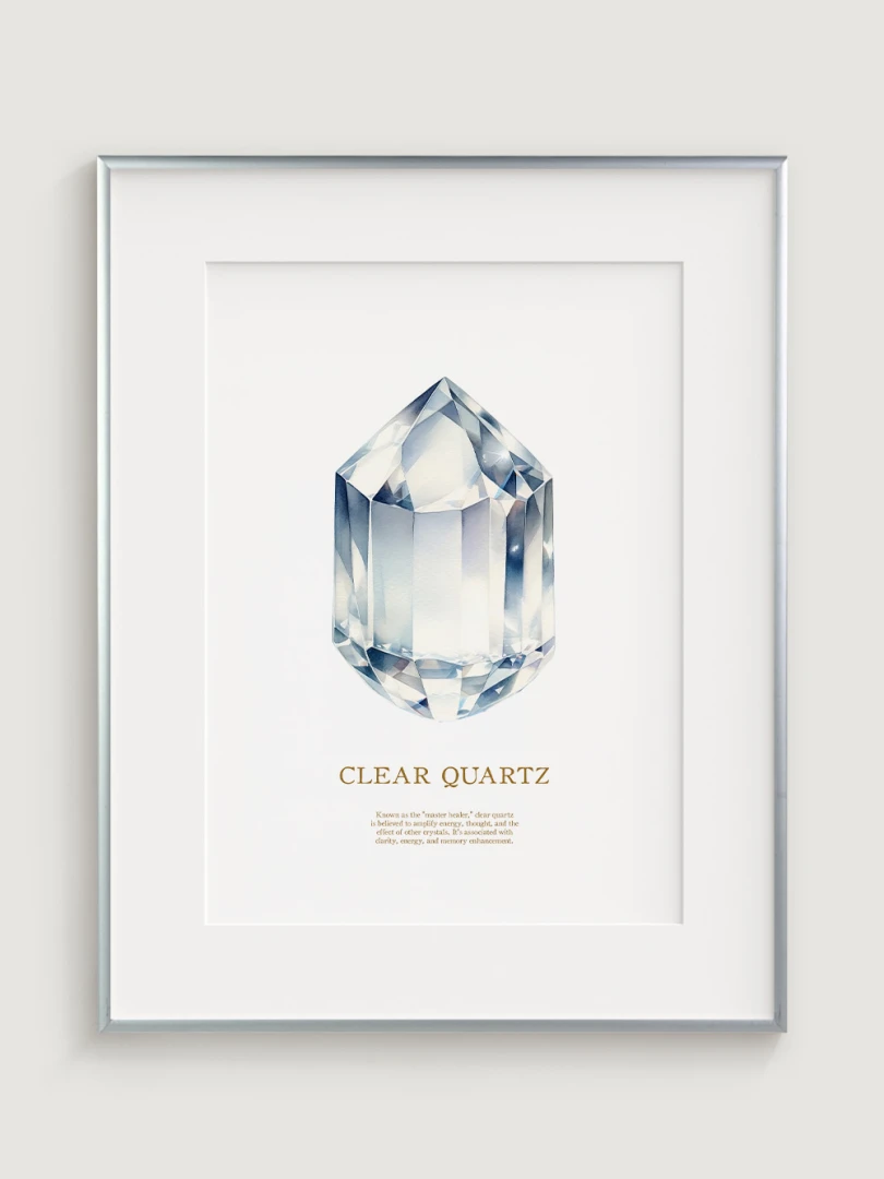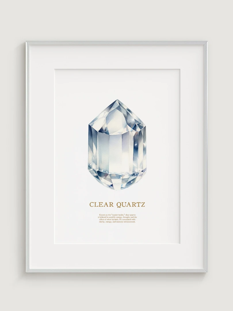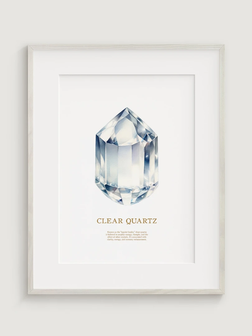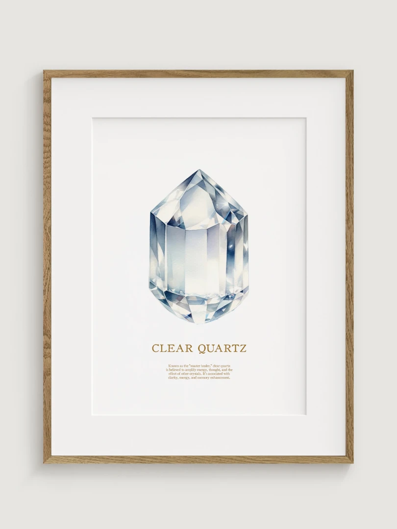 Known as the 'master healer', this print captures the crystal's ethereal beauty and its believed properties to enhance clarity, energy, and focus. A perfect addition to any space seeking a touch of tranquility and inspiration.