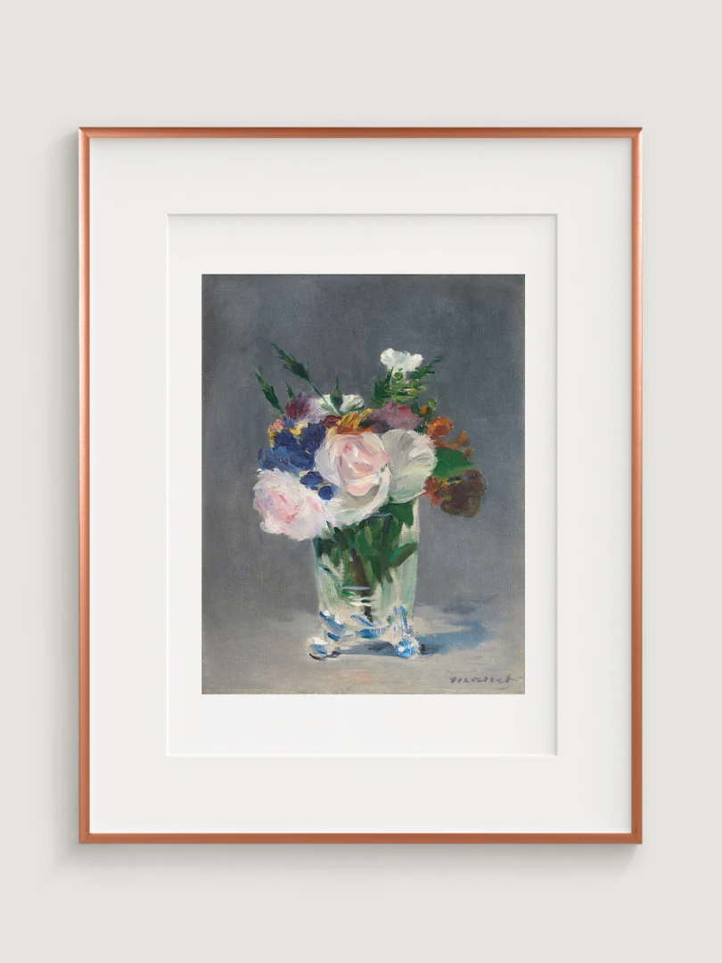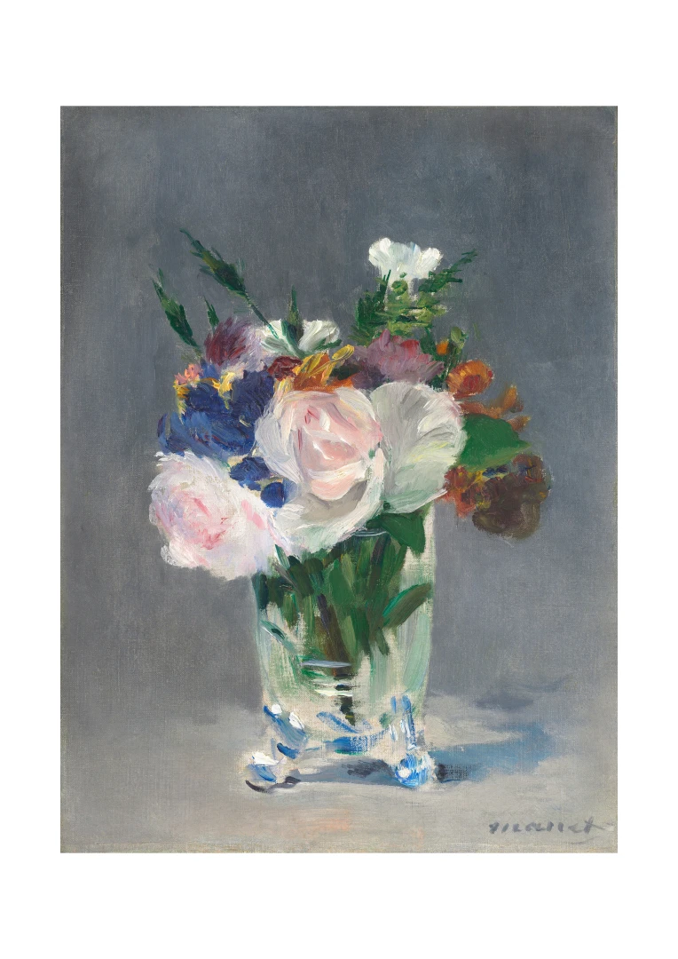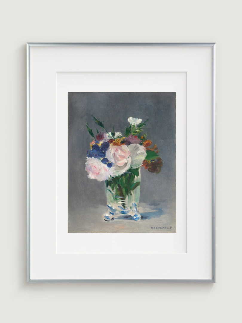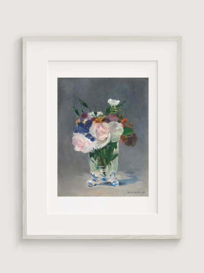 We present a print of Édouard Manet's iconic work "Flowers in a Crystal Vase" from 1882. This gorgeous print captures the delicacy and beauty of flowers arranged in an elegant crystal vase. Manet's masterful technique and vibrant colors bring a sense of freshness and natural beauty to the image.