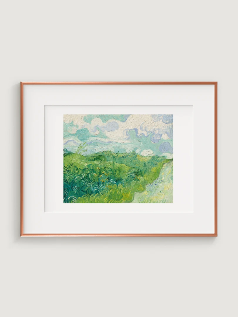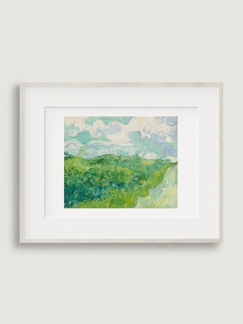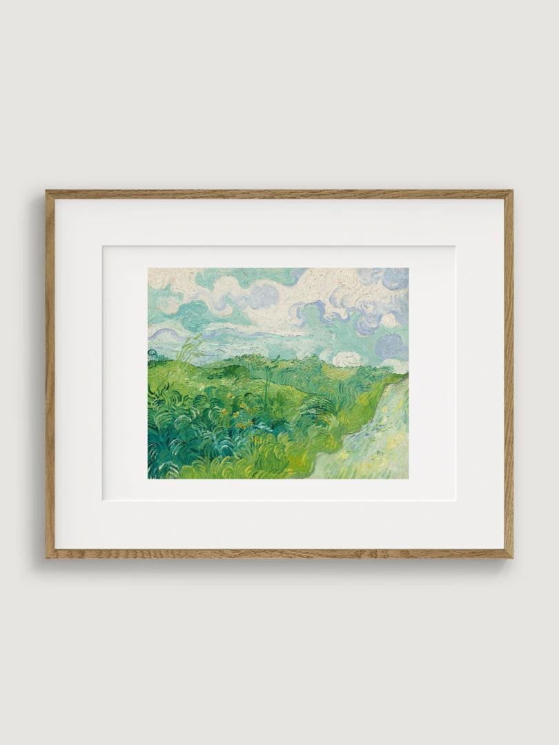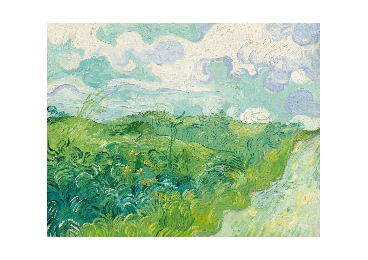 This iconic work by world-renowned artist Vincent van Gogh depicts wind-swept clouds and tall grasses, using cool shades of green and blue to bring a sense of calm and elegance to your interior. This print will make a great addition to your living room or study, bringing a touch of nature and art to them.