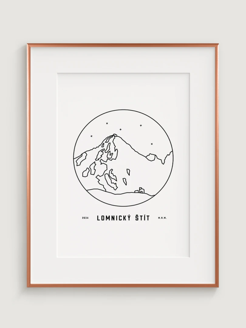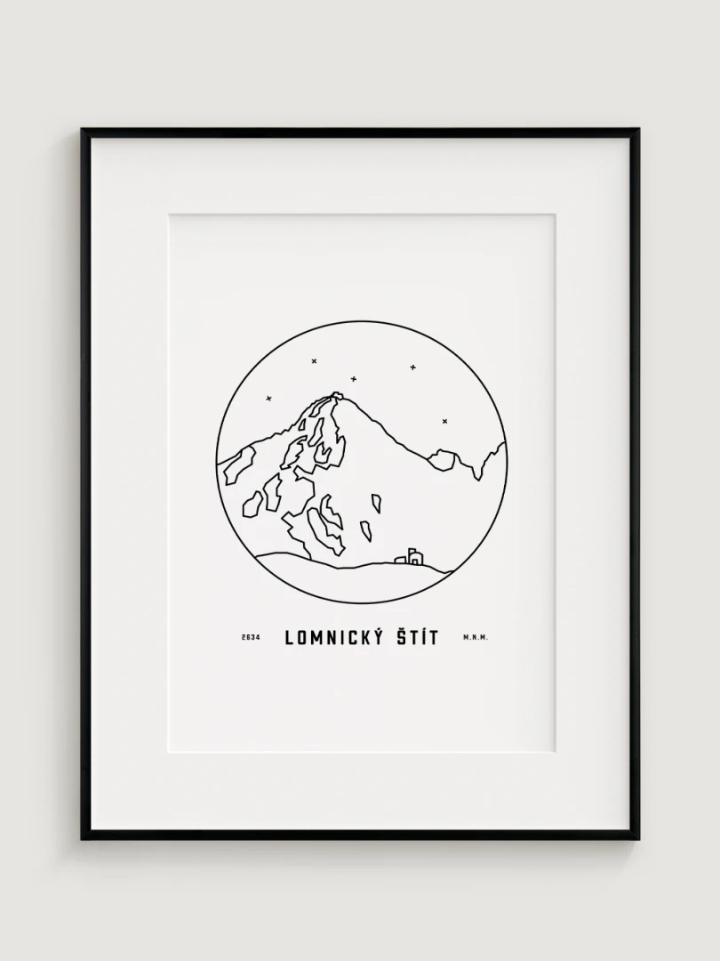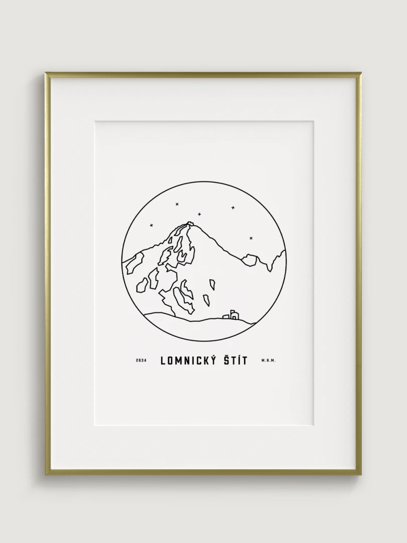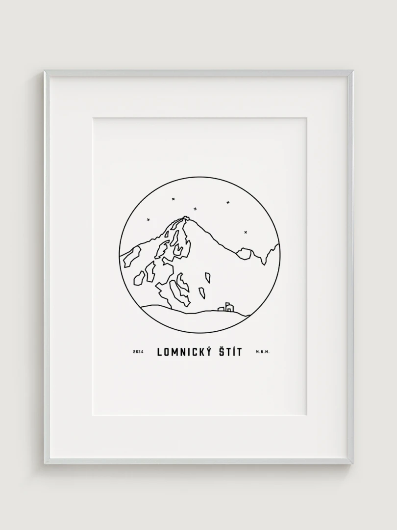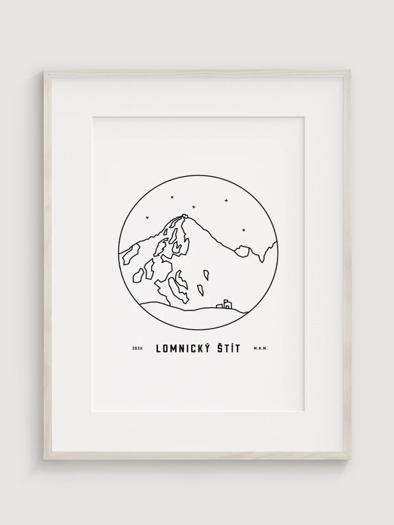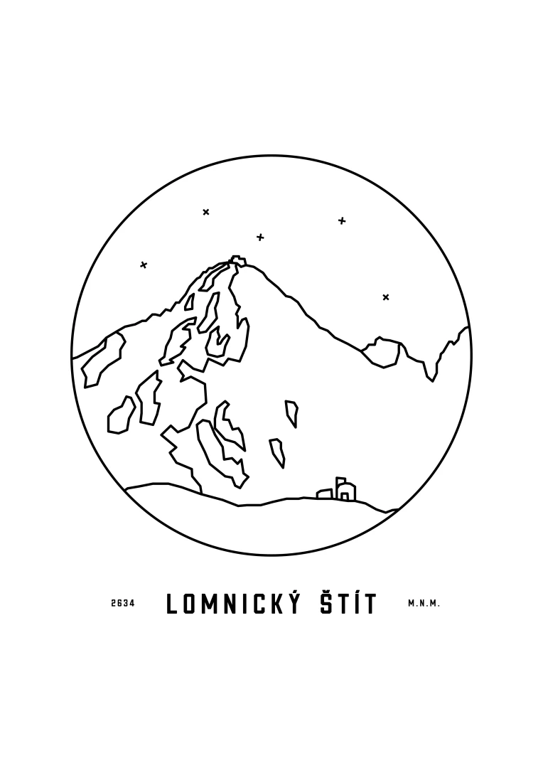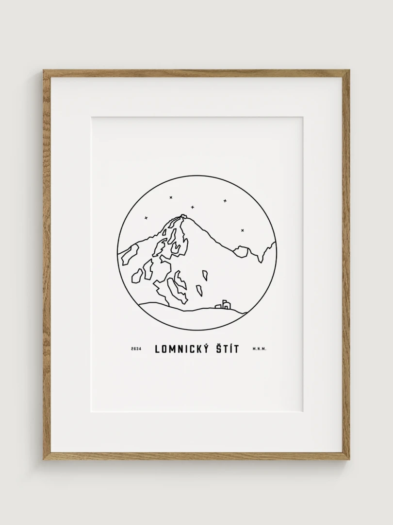 Lomnicky štít is depicted in a detailed circular vignette with its name and altitude, which creates a unique and aesthetic addition for nature and mountain lovers. This print is an ideal gift for those who want to bring home a piece of the Slovak landscape and the majesty of its peaks.