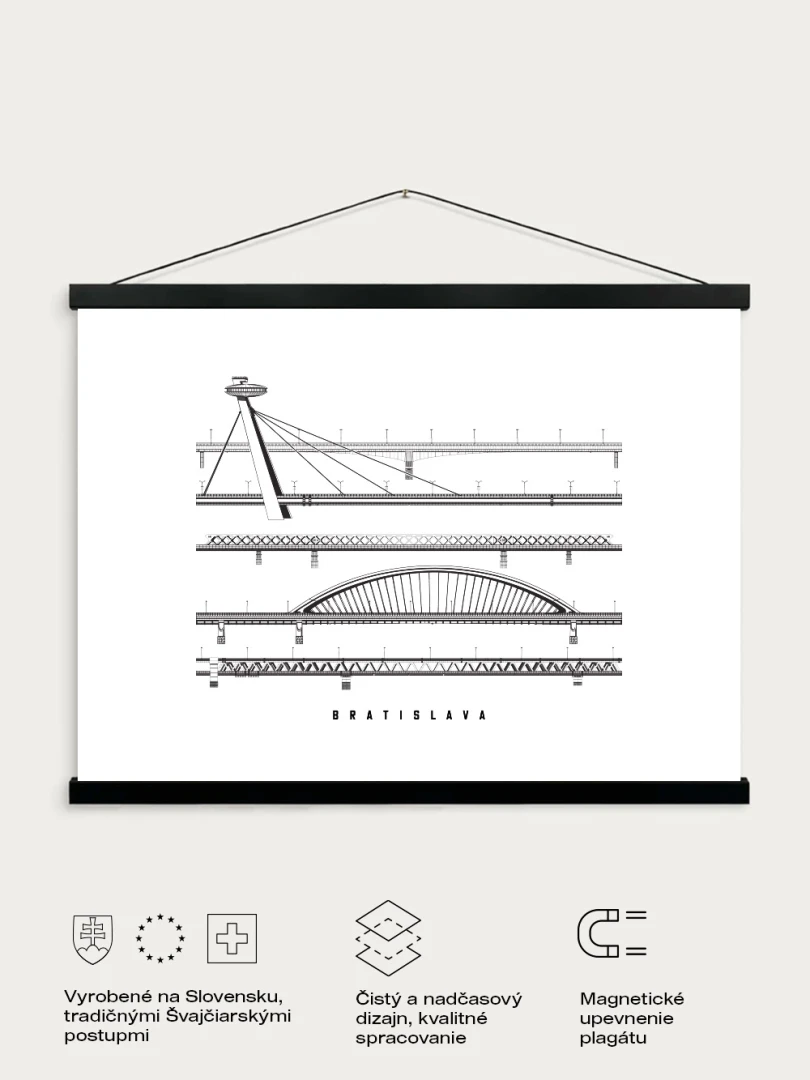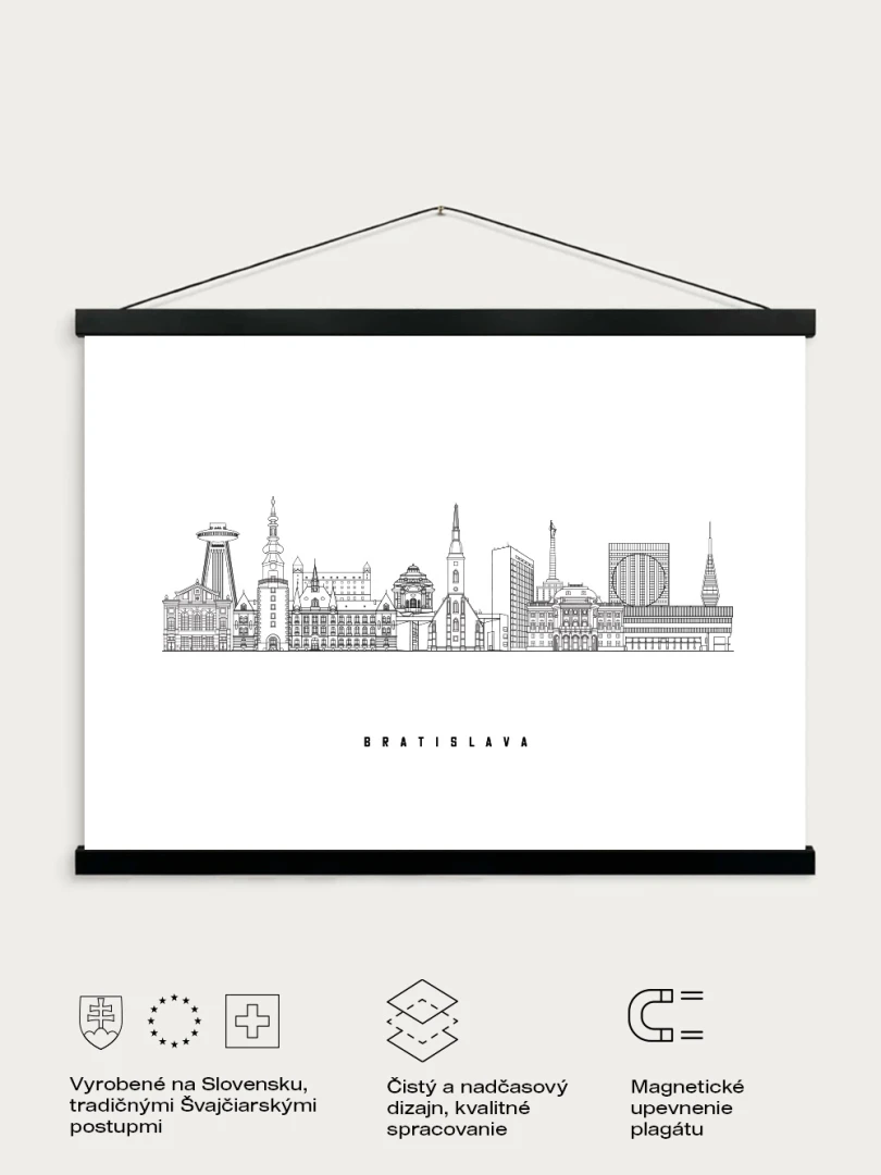 We bring you an elegantly simple solution for hanging prints or posters. The frame is composed of matt wooden slats, which hold the poster/print together thanks to small magnets in each slat. A lanyard attached to the top back rail is used for hanging.