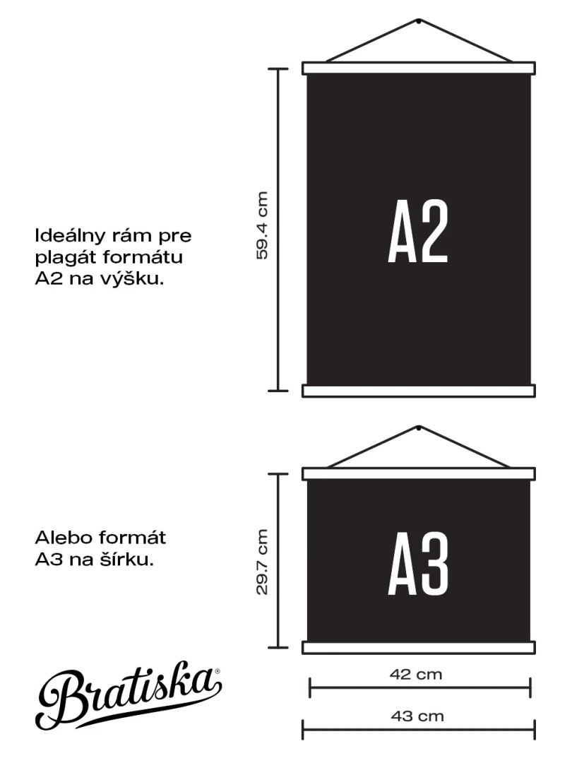 The 43cm size is suitable for hanging A3 prints in the horizontal or A2 prints in the vertical. The frame is made in Slovakia.