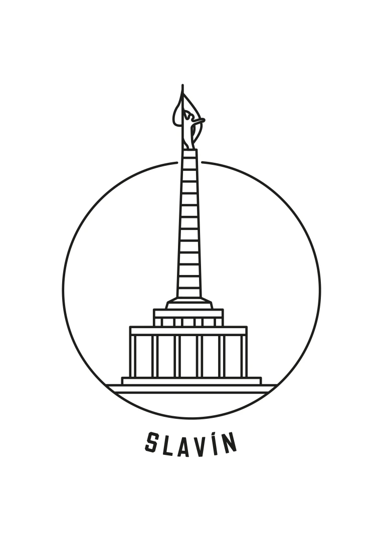 This piece captures the towering monument's elegant silhouette within a simple, yet striking circular frame, embodying a modern take on this historic site. Crafted with sharp black lines on high-quality paper, the artwork distills the grandeur of Slavín into a minimalist design that focuses on the monument's distinctive obelisk and its symbolic statue. The clean, uncluttered style of this print makes it an ideal choice for those who appreciate art that combines historical significance with contemporary aesthetics.