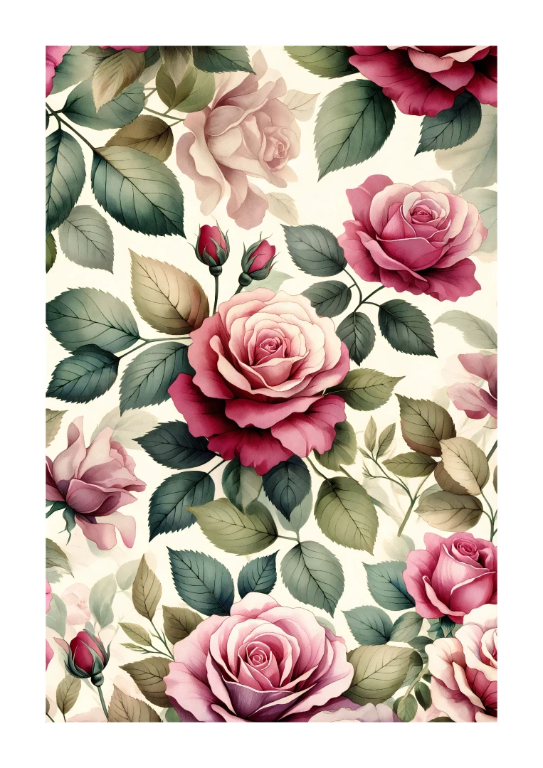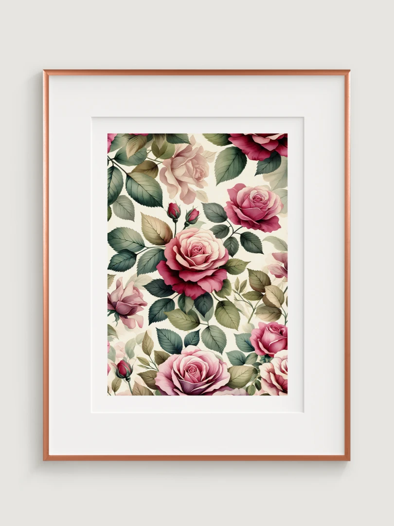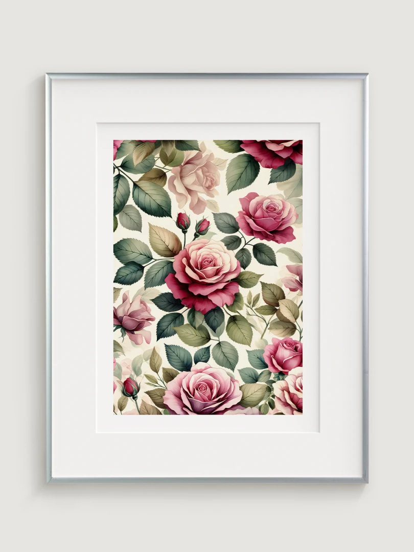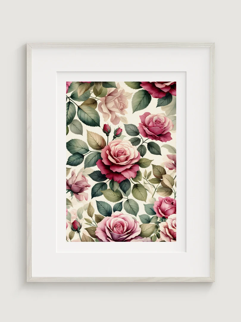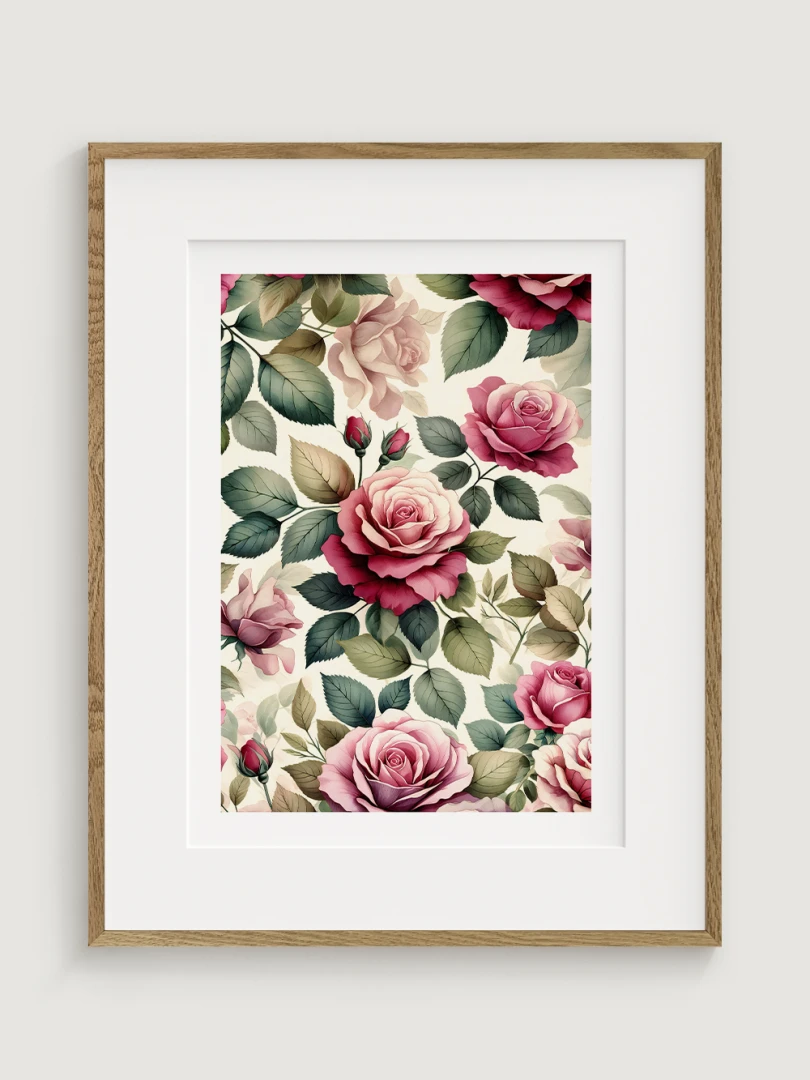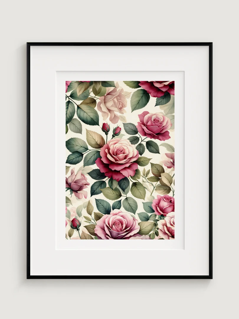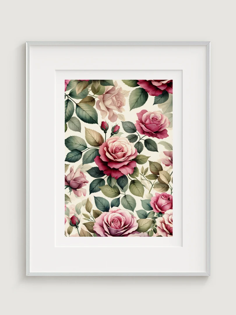 This print is a celebration of nature's artistry, perfect for anyone looking to add a touch of vintage floral elegance to their decor. The sophisticated palette and realistic depiction of roses make it an ideal choice for living rooms, bedrooms, or any space that could use a floral accent.
